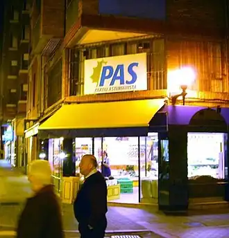 Partíu Asturianista (PAS) is a nationalist political party from Asturias, Spain, founded in 1985 by Xuan Xosé Sánchez Vicente.
