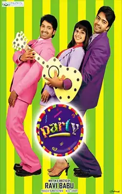Party is a 2006 Indian Telugu-language film co-written and directed by Ravi Babu in the genre of comedy that makes a statement on the corporate environment shaping the IT world in the new millennium. It stars Allari Naresh, Shashank, Ravi Babu and Madhu Sharma.[1][2][3] The plot of the film is heavily inspired from the Hollywood film Weekend at Bernie's.
