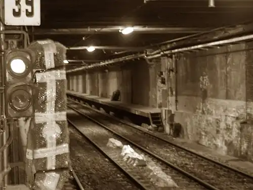 Unlike Alberti Norte which was converted into an electrical substation,[4] Pasco Sur has mostly maintained its original condition, with its turnstiles, signage and ticket counters still intact, and these can be occasionally observed by passengers when the station's lights are occasionally turned on.[3]