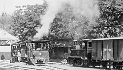 ![]() PsSM's freight train with coupled Hohenzollern PsSM (?) B16 tram engine-Cockerill PsSM 6/ C2201 Louisa, ca 1910 | |