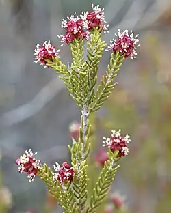 Passerina is a genus in the plant family Thymelaeaceae, native to southern Africa.[1] They are ericoid bushes growing largely in fynbos and other Southern African scrub habitats.