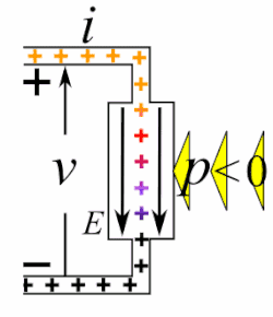 - Generator convention - In source components like generators and batteries, the variables V and I are defined according to the active sign convention above; the current variable is defined as entering the negative terminal of the device.[11]
