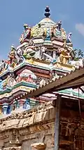 This temple was first built by Kochchenganan.[5] The temple is situated in the north east of the village. The entrance is facing east. It has three tier rajagopura, the biggest in these seven temples. On either side of the entrance sculptures of Thanjavur Nayak style are found. After crossing over the 7 m x 10 m entrance of the gopura, one can enter into the temple premises. It has two structures one for presiding deity and another for the consort. This temple has one big outer prakara. A bali pita and rishaba are found in the outer prakara. In the prakara, vilva tree, shrines of Dakshinamurthy, Jestadevi, Nagavalli, temple well, Sanisvara and Bhairava are found. In the north west of the outer prakara two shrines are found. In one shrine naga devata is set up. Next to this shrine, Gajalakshmi shrine is found. Through the steps found in southern side, the shrine of the presiding deity could be reached. The shrine is 5 m above the ground floor. Upper floor has two sections. In this floor shrines of Uchista Vinayaka, presiding deity and Goddess are found. The main shrines are found on the upper floor, at a height of 3 m. After going through the steps Ganesha shrine could be reached.[1]