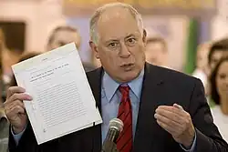 In 1977, Quinn led a statewide petition drive for open primaries in Illinois,[19] and in 1978, a statewide petition drive for a property tax freeze. On December 16, 1978, the anniversary of the Boston Tea Party, Quinn led a campaign where 40,000 Illinois taxpayers sent tea bags to the office of Governor James R. Thompson to protest a lame-duck 40% pay raise for legislators and state officials.[20] Thompson had supported the pay raises,[21] which were later roundly criticized by President Jimmy Carter, United States Senators Adlai Stevenson III and Charles H. Percy, and others. Thompson angrily defended his actions,[22][23] saying that the governor is not "a nine-to-five clerk," calling it "a different job," but ultimately the tea bag movement prevailed.[24]