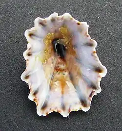 Ventral view of the shell of Patelloida corticata.