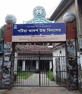 Patiya Aadorsho Uccho Bidyaloy (Patiya Model High School) is one of the oldest schools of Bangladesh. It was established in 1845 as an English-medium school by the founder Mr. Durga Kinkor Datta. The school was affiliated with Calcutta University in 1867. Now it is affiliated under Board of Intermediary and Secondary Education, Chittagong, Bangladesh.[1]
