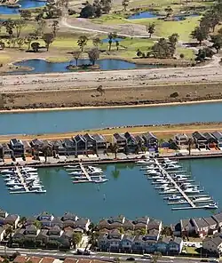 Patterson Lakes is mostly a canal community built around the lower section of the Patterson River just 1 km (0.62 mi) upstream of the river mouth. The suburb consists predominantly of new housing developments, and is home to popular boat launching facilities. The Patterson River and its tidal canals are popular boating portals into Port Phillip Bay. It includes four public boat ramps, joins the Tidal Canal system to Port Phillip Bay; and includes the Patterson Lakes Marina and its facilities in Middle Harbour and Inner Harbour.[3]