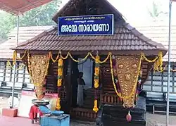 Navratri is also of great significance to this temple. Special poojas, Carnatic concerts and cultural programmes are performed at the Navratri Mandapam annexe.[5] Apart from Hindus, the organising committee for the Navratri festival includes people from other religions also, including Muslims and Christians. This symbolises the religious and cultural harmony of Pandalam. The Navratri Mandapam has facility to initiate Vidyarambham at the completion of Navratri celebrations.[6]