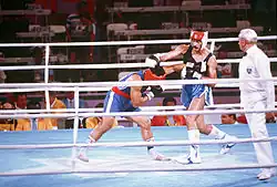 Tuvale (left) versus Aristides Gonzalez of Puerto Rico at the 1984 Olympics | |