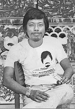 Paw Thame (1948–2014) was a Burmese-American painter. He was one of the leaders of the modernist art movement in Burma during the 1970s and early 1980s. Paw Thame, Win Pe, Kin Maung Yin and Bagyi Aung Soe were friends at the Peacock Gallery exchanging modernist ideas and concepts, alternatively supporting one another and locked in rivalry. They built on the foundations laid by early Burmese modernists Aung Khin and Kin Maung (Bank).[1] Now recognized as the giants of Burmese modern art, Yangon society in the 1970s disparaged them--"modern art" was literally translated as "psychopathic art" or "crazy art".[2][3]