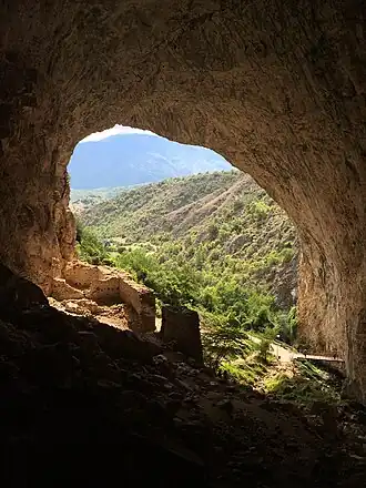 At the cave's entrance there is a medieval fortress and the remains of a mill. The remains of a fortress in the cave are linked to a region called Devini Kuli visible from inside the cave. According to local legends, both fortresses were homes of Prince Marko's sisters. Pešna is registered as a site from the late antique period in North Macedonia. A tomb dated from late antiquity (5th cent.)[3][4] with a brick vault was discovered in front of the cave's entrance.[2]