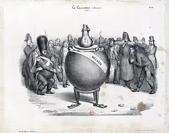 - ^ "Planche de la lithographie mensuelle" [Monthly lithograph board]. La Caricature (in French). April 17, 1834. Archived from the original on October 17, 2021.