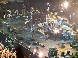 In August the band played two shows at Fenway Park in Boston.[60] On the first night they covered Aerosmith's song "Draw the Line" for the first time.[61][62] At the second Boston show, they again covered "Draw the Line", this time with Aerosmith's bassist Tom Hamilton joining the band.[63][64] Later the same month, they concluded the tour by playing two shows at Wrigley Field.[65][66] At their second Wrigley show, they were joined onstage with Dennis Rodman while the band played the song "Black, Red, Yellow".[67][68]