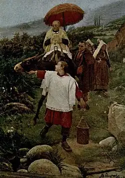 In 1897 Llosas was elected to the Olot ayuntamiento,[47] becoming the third teniente de alcalde,[48] president of Comisión de Gobernación and member of the other two.[49] During the following term[50] he grew to the first teniente de alcalde, president of Comisión de Fomento and vocal of the central, hospital[51] and economy[52] commissions, in 1900 briefly serving as alcalde.[53] In 1903 Llosas presented his candidature to the provincial self-government of Girona; he stood as a "regionalista".[54] Elected from the Olot-Puigcerda district, he served as diputado until 1907.[55] In the provincial self-government he represented a Traditionalist version of regionalism, declaring himself a Catalanist and anti-centralist;[56] his opening address in the chamber was in Catalan, an extravaganza which earned him admonition by the president.[57] As member of diputación he inspired and supported a new Olot Traditionalist periodical, La Tradició Catalana.[58] At that time he also published pamphlets formatted as discourses on political philosophy.[59]