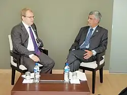 ![]() Former Foreign Minister Pedro Vaz (right) meeting with Estonian Foreign Minister Urmas Paet. | |