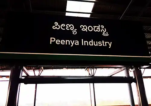 Peenya Industry is an elevated metro station on the North-South corridor of the Green Line of Namma Metro serving the Peenya area of Bengaluru, India. It was opened to the public on 1 March 2014.[1][2]
