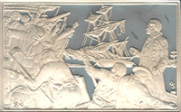A token was produced and circulated in 1875 to celebrate the "Peggy Stewart" incident. After the American Revolutionary War, citizens of Maryland came to view the burning of Peggy Stewart as an act of heroism, considering the angry crowd who demanded the burning to be devoted patriots for their resistance of the British Tea Act. On October 19, 1904, the city of Baltimore commemorated the event with The Burning of the Peggy Stewart, a mural by Charles Yardley Turner (1850–1919), painted on the west wall of the Criminal Court Lobby in the Clarence M. Mitchell, Jr. Courthouse.[14] On October 19, 1974, the Bicentennial Council of the 13 Original States created a silver ingot honoring the two-hundredth anniversary of the burning. The incident is also honored by "Peggy Stewart Tea", a blend sold by Eastern Shore Tea Co. The burning is honored each year by a ceremony in Annapolis. The story was recounted in a children's book Ahoy, Peggy Stewart by Maud Esther Dilliard, published by Dutton, 1956.