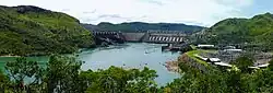 Peixoto Dam, also known as Mascarenhas de Moraes Hydroelectric Plant, is a hydroelectric dam on the Grande River in the state of Minas Gerais, Brazil, about 20 kilometres (12 mi) west of Delfinópolis.