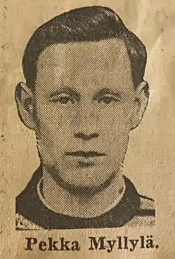 Pekka Aleksander Myllylä (born 7 July 1932) is a Finnish ice hockey goalkeeper. He competed in the men's tournament at the 1952 Winter Olympics. In Finland, he represented team Ilves during 1950–1958 and won the Finnish Championship three times. (1951, 1952 and 1957). He also played in the national ice hockey team five times.[1][2][3] He was born in Tampere.