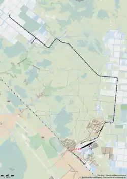 The Pelgorskoye peat railway's first line was constructed in 1950s, in the Tosnensky District, Leningrad Oblast, from the Ryabovo village to the swamp peat fields. The railway was built for hauling milling peat and workers and operates year-round.[2] In 2001 the Pelgorskoe-M Peat Company started replacing equipment and repairing the railway between the mine and the processing facilities. The total length of the Pelgorskoye narrow-gauge railway at the peak of its development exceeded 25 kilometres (16 mi), of which 20 kilometres (12 mi) is currently operational as of 2016. A peat factory was built and put into operation in 2004.[3] In 2016, repairs were made to the track.[4]