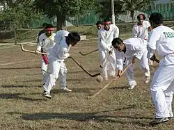 Pelota purépecha (Spanish for "Purépecha ball"), called Uárukua Ch'anakua ( "a game with sticks"[1]) in the Purépecha language, is an Indigenous Mexican sport similar to those in the hockey family. A common variant, distinguished as pasárutakua in Purépecha, uses a ball which has been set on fire and can be played at night.[2][3] It has a league,[1] several practicing communities[2] and about 800 players across Mexico as of 2010.[4] It is one of 150 pre-Hispanic Mexican games at risk of dying out along with Ulama.[4]