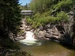 ![]() The Pemigewasset River descends into the Basin in Franconia Notch. | |