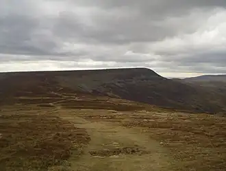 Its summit is stony and has damaged Bronze Age cairns and a large shelter cairn together with a trig point.[2] Further Bronze Age cairns are found along the western edge of the plateau to the south.