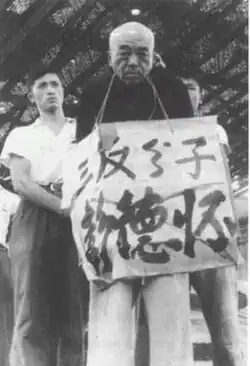 After being recalled to Yan'an, Peng was subjected to a political indoctrination campaign in which he was criticized as an "empiricist" for his good relations with the Comintern and survived professionally only through an unconditional conversion to Mao's leadership.[33] Mao ordered Peng to be criticized for 40 days for the "failings" of the Hundred Regiments Campaign (even though Mao had supported it and later praised its successes). Peng was not allowed to reply and was forced to make a self-criticism.[34] Privately, Peng resented Mao's criticism of him, and in 1959 once told Mao: "At Yan'an, you fucked my mother for forty days."