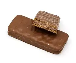 Penguin is a milk chocolate bar filled with biscuit and chocolate cream, produced by Pladis' manufacturing division McVitie's at their Stockport factory.
