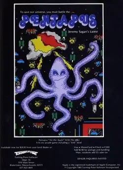 Pentapus is a shoot 'em up for the Apple II published by Turning Point Software in 1983. It was developed by Jeremy Sagan, son of astronomer Carl Sagan.[1] The player battles an army of enemies led by the Pentapus.