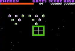 Players move a weapon, a Stargate, which is able to fire projectiles to defeat enemies, but is also vulnerable to bombs and has five lives. The game contains four difficulty levels of play, from K to 1-3, with the K level featuring slower paced gameplay designed for children. In each level, a player must defeat three waves of enemies, and then defeat the Pentapus. The game is compatible with a joystick, features a pause system, and allows high scores to be saved and written to the disk.[2]