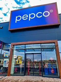 Pepco is a Polish discount store chain with shops across Europe. It is part of the London headquartered and Polish listed 'Pepco Group' alongside sister Polish brand Dealz.[3] Pepco shops account for most of the group's shops with 3500 branches across Europe (out of a total of 4600),[1] and has replaced Dealz (in format and brand) completely in most European countries, except for Poland, Ireland and the Isle of Man.[1][4]Pepco filed for bankruptcy in 2025 only in Germany.