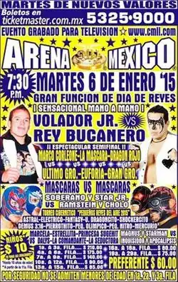- ^ a b c d "Volador Jr. supera en mano a mano a Rey Bucanero en el CMLL". Terra México (in Spanish). January 6, 2015. Retrieved January 7, 2015.
