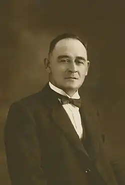 Percy soon became involved in politics, being a founding member of the Country Party in South Australia and being elected to the South Australian Legislative Council for the Northern District in 1924, a seat he would hold for the rest of his life.[3] The family moved to Prospect in the northern suburbs of Adelaide. Percy was involved in the defeat of the James Scullin government in 1931 and, with fellow South Australian Archie Cameron, negotiated the formation of the Liberal and Country League in South Australia.[4] As part of the final agreement in the formation of the LCL, Blesing was promised a cabinet post in any future LCL government.[5] Richard Layton Butler led the LCL to power in 1933, and per the agreement, Blesing was appointed Minister for Agriculture and Local Government.