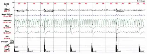 Polysomnography is recognized as the assessment method which brings most precise information on sleep quality, sleep structure and physiological parameters during sleep (respiration, heart rate, movements). Therefore, diagnostic of PLMD can usually be established only in laboratory settings. As people usually ignore the cause of their daytime impairments, PLMS during sleep are mostly found through laboratory examination rather than clinical complaints.[1]