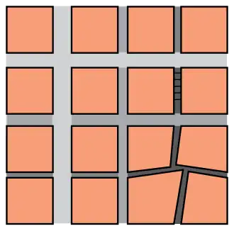A parallel debate has been occurring in North America, where researchers have proposed and applied the fused grid, an urban street network pattern which follows the principles of filtered permeability, to address perceived shortcomings of both the 'traditional' grid and more recent suburban street layouts. A study conducted in Washington State[9] found that the fused grid was associated with significantly higher levels of walking than the other two alternatives. A recent comparison of seven neighbourhood layouts found a 43 and 32 percent increase in walking with respect to a conventional suburban and the traditional grid in a Fused Grid layout, which has greater permeability for pedestrians than for cars due to its inclusion of pedestrian-only paths (filtering). It also showed a 7 to 10 percent range of reduction in driving with respect to the remainder six neighbourhood layouts in the set.[10]