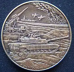 The Persian Gulf Veterans National Medal is an honorific military medal authorized by United States Congress presented to members of the U.S. Armed Forces who served in a combat zone during the Persian Gulf War.[1][2][3]