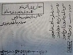 "Persian manuscript in Japan" (Japanese: 紙本墨書南番文字 Hepburn romanization: Shihonbokusho Nanban-Moji, Persian: دستخط پارسی ژاپن; also called "南蛮 Nanban") is a Persian inscription from 1217 AD that was written by a Persian in Quanzhou of China for a Japanese monk Keisei, a poem of Shahname Ferdusi. It is designated as a national important cultural property (artwork) in Japan. It is the oldest existing Persian document in Japan.[1] The Persian manuscript in Japan had been written in 3 parts. It was a very famous poem in the Persian language. The first part is from Vis and Rāmin, the second part is from Shahnameh and the third part mentioned both in Jami' al-tawarikh and also shahnameh and it is sorrow farewell of Iraj from Fereydun.[2]