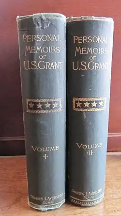 The Personal Memoirs of U. S. Grant are an autobiography, in two volumes, of Ulysses S. Grant, the 18th President of the United States. The work focuses on his military career during the Mexican–American War and the American Civil War. The volumes were written in the last year of Grant's life, amid increasing pain from terminal throat cancer and against the backdrop of his personal bankruptcy at the hands of an early Ponzi scheme. The set was published by Mark Twain shortly after Grant's death in July 1885.