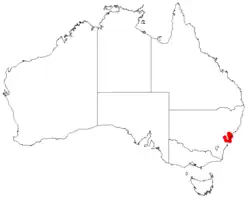 This persoonia grows in sandy soils derived from Sydney sandstone at altitudes up to 250 m (800 ft) between Gosford and Frenchs Forest.[2][3]