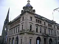 The council meets and has its main offices at 2 High Street in Perth, on the corner with Tay Street, which had been built in 1901 as the headquarters of General Accident. The main public enquiries reception is at the nearby Pullar House at 36 Mill Street, which was formerly the business premises of J. Pullar and Sons. The council also uses the former Municipal Buildings on High Street, completed in 1881 for the old burgh council of Perth. It also has area offices in Auchterarder, Blairgowrie, Crieff and Pitlochry.[10]