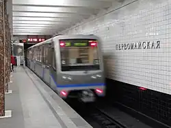 Pervomayskaya (Russian: Первомайская) is a Moscow Metro station in the Izmaylovo District, Eastern Administrative Okrug, Moscow. It is on the Arbatsko-Pokrovskaya Line, between Izmaylovskaya and Shchyolkovskaya stations.