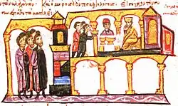 On May 11, 912, on the death of the Byzantine Emperor Leo VI the Wise, his brother Alexander III succeeded him.[10] The unpopular, inexperienced, ill and possibly chronically drunk Alexander ruled until his death on June 6, 913. This was ideal for Symeon, who had his troops waiting in Thrace to attack Byzantium. In August 913, Symeon appeared at the walls of Constantinople, seeking no plunder, only the crown. Symeon had, in contrast to Tsar Boris, been schooled in Constantinople, embracing Byzantine ideology, and wanted to rule a joint Roman-Bulgarian Empire as Roman Emperor. Patriarch Nicholas Mystikos recognized Symeon as Emperor of Bulgaria, and married his daughter to Constantine VII. In February 914, Zoe Karbonopsina, the mother of Constantine, quickly ousted Nicholas as regent (although letting him remain the Patriarch), and she, as regent, nullified the title given to Symeon, as well as the marriage plans.[12] Zoe's acts enraged Symeon, who went on to conquer Thrace.[12] The Byzantines had no choice but to look for allies, sending envoys to the Magyars, Pechenegs and Serbs.[12]