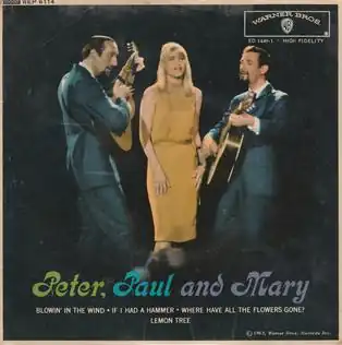 Peter, Paul and Mary (EP) was an EP 45 rpm record by the American folk trio Peter, Paul and Mary, released on Warner Brothers and Decca Records in the UK in 1963, WEP 6114, in mono. The record reached #3 in the British EP charts.[1]