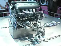 The Peugeot 908 is powered by a 5.5 L (340 cu in) HDi diesel engine, the maximum size allowed by Le Mans Prototype rules. Its configuration is a 100° V12, the angle having been chosen to lower the center of gravity. Its output has been revealed to be over 730 horsepower (540 kW) and 1,200 N⋅m (890 lbf⋅ft) of torque, nearly 10% more than Audi's similar R10 TDI.[9]