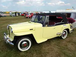 The Willys-Overland Jeepster was the last true phaeton produced by a major US automaker,[11] and was introduced ten years after the previous phaeton to be offered by an American manufacturer.[12] The post-World War II demand for automobiles - of any description - was an opportunity for Willys-Overland to build on the Jeep's military recognition and they evolved the 1946 Jeepster two-door station wagon to the 1948 phaeton.[13] It provided a "Spartan but adequate appointments" that included hinged front door vent windows and plastic side curtains rather than roll-up glass windows.[13] Marketed from 1948 to 1951, the Jeepster phaeton was a rather expensive niche vehicle and "though admired by many, it was purchased by relatively few."[14]