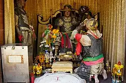 The eye-level height shrine believed to formerly contain the head of Phan Thai Norasing and the damaged figurehead of the barge -