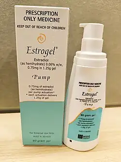 | Gel pump | 0.06% (0.52, 0.75 mg/pump) | Elestrin, EstroGel | ||