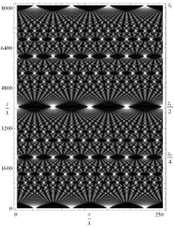 - ^ Cloetens, P.; Guigay, J. P.; De Martino, C.; Baruchel, J.; Schlenker, M. (1997). "Fractional Talbot imaging of phase gratings with hard x rays". Optics Letters. 22 (14): 1059–61. Bibcode:1997OptL...22.1059C. doi:10.1364/OL.22.001059. ISSN 0146-9592. PMID 18185750.