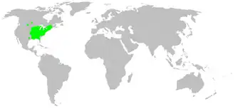 Phidippus whitmani can be found throughout the United States and Canada. In the United States, its range extends from Florida in the south to New York and New Hampshire in the north, and it can be found as far west as North Dakota.[2][4] In Canada, the species can be found throughout Nova Scotia, Newfoundland, Québec, Manitoba, and Ontario. It is ranked as apparently secure in Ontario.[5]